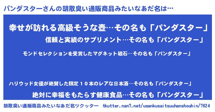 | 伝説のあだ名 | 『救世主となる技術者パンダスター』 |