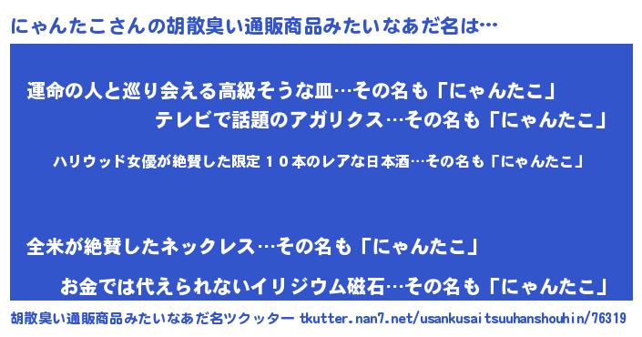 | ヒーロー風カッコイイあだ名 | 『仮面ニャダー』『友情の使者にゃんたこ』 |