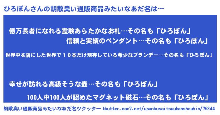 | 意味不明あだ名 | 『住所不定無職ひろぽん(85歳)』 |