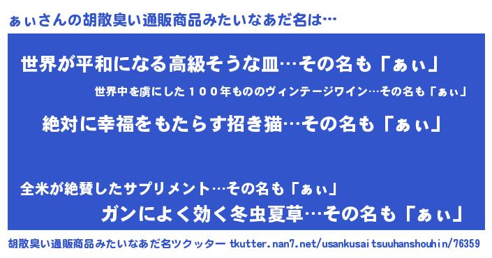 | 男性向けラノベタイトル風あだ名 | 『ぁぃという概念が存在しない退屈な世界 』 |