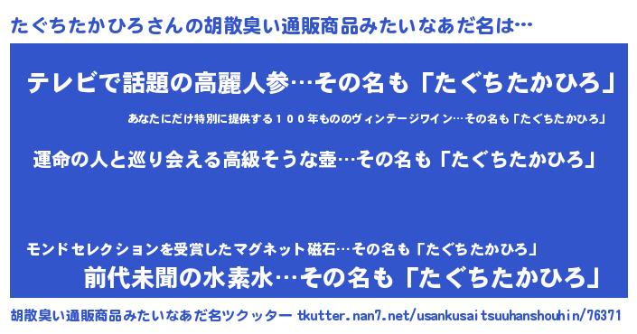 | 意味不明あだ名 | 『ニラ科たぐちたかひろ属』 |