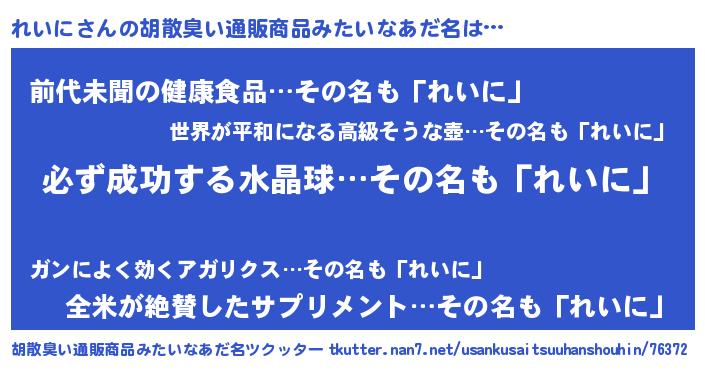 | 意味不明あだ名 | 『エリンギ科れいに属』『ペロリンれいに』 |
