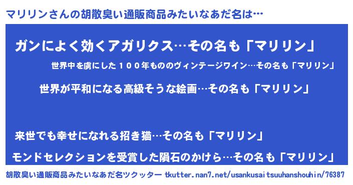 | 意味不明あだ名 | 『マリリンフォーエバー』『自称マリリン』 |