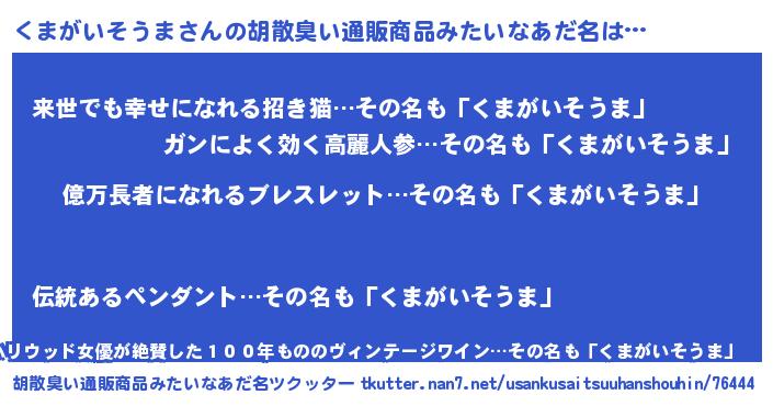 | ヒーロー風カッコイイあだ名 | 『スーパークマガイソウマ』 |