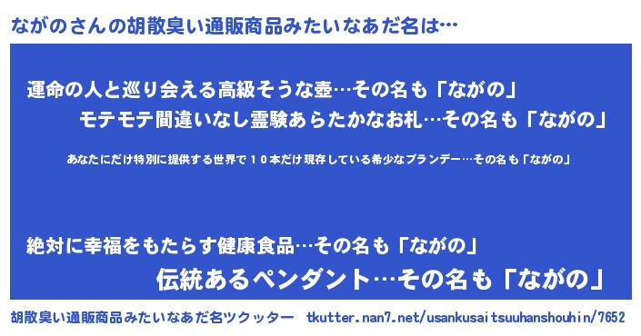 | 男性向けラノベタイトル風あだ名 | 『ながの~年齢イコール彼女いない歴の魔法使い~』 |