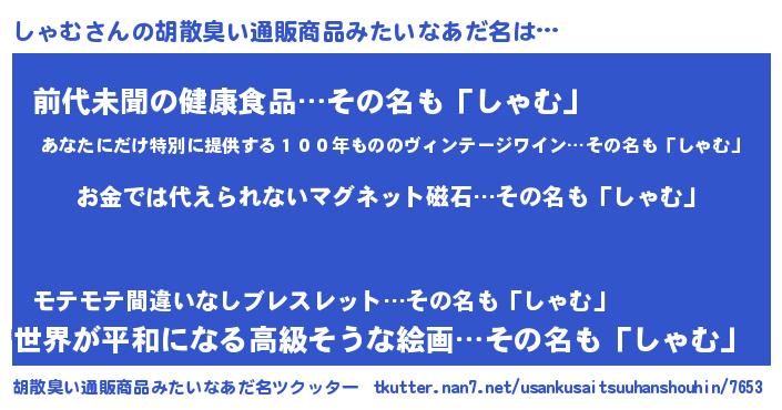 | ヒーロー風カッコイイあだ名 | 『慈愛の使者しゃむ』『ネオシャム』 |