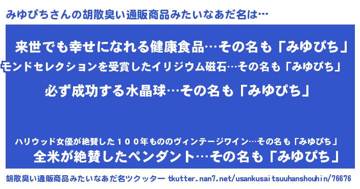 | 意味不明あだ名 | 『ペロリンみゆぴち』『永久保存みゆぴち』 |