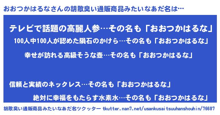 | ヘコむあだ名 | 『つくし』『おおつかはるな(小並感)』 |