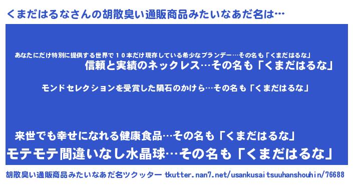 | ヒーロー風カッコイイあだ名 | 『天空の使者くまだはるな』 |