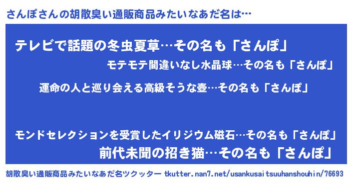 | 意味不明あだ名 | 『さんぽフォーエバー』『自称さんぽ』 |