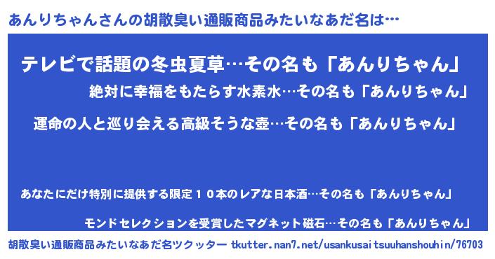 | ヘコむあだ名 | 『酢こんぶ』『あんりちゃん(苦笑)』 |
