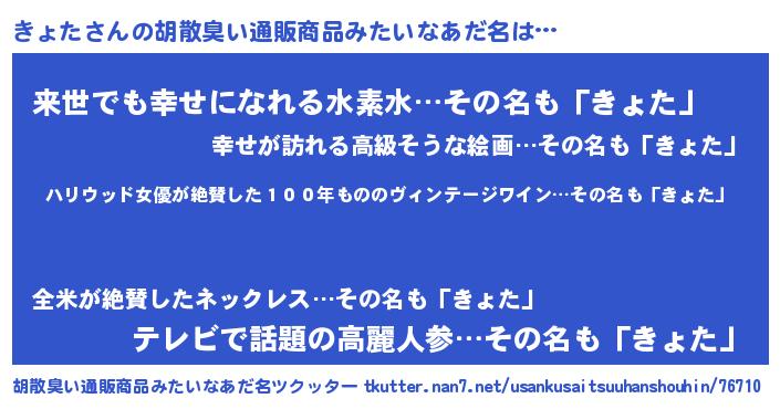 | 意味不明あだ名 | 『住所不定無職きょた(1歳)』『自称きょた』 |