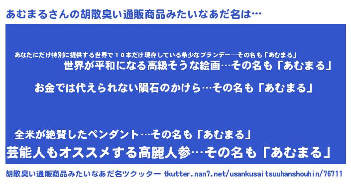 | ヒーロー風カッコイイあだ名 | 『慈愛の使者あむまる』『仮面アムダー』 |