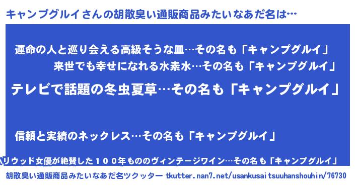 | ヘコむあだ名 | 『豆乳』『キャンプグルイ(苦笑)』 |