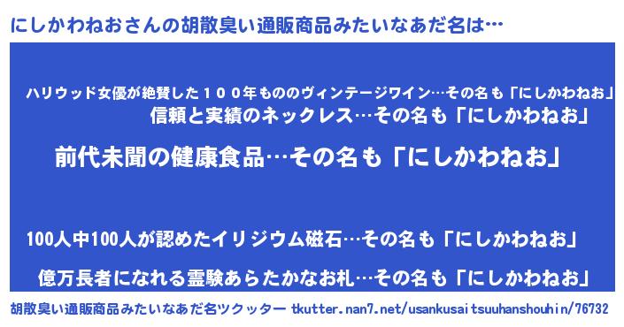 | 意味不明あだ名 | 『永久保存にしかわねお』 |