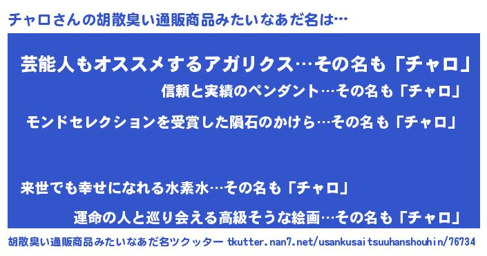 | 意味不明あだ名 | 『眠気覚ましガムチャロ味』『自称チャロ』 |