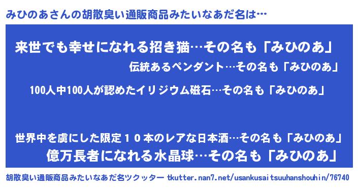 | ヘコむあだ名 | 『みひのあ(笑)』『みひにー』 |