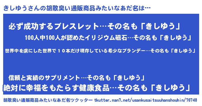 | 意味不明あだ名 | 『住所不定無職きしゆう(74歳)』 |