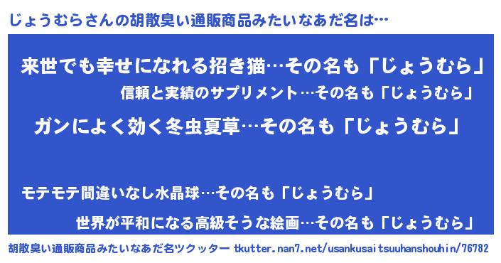 | 意味不明あだ名 | 『自称じょうむら』『永久保存じょうむら』 |