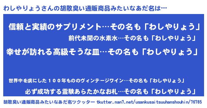 | ファンタジー風あだ名 | 『エターナルワシヤリョウー』 |