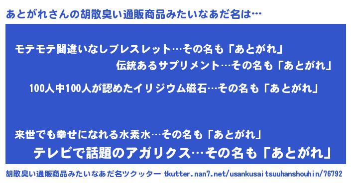| ヘコむあだ名 | 『あとふぇ~』『あとっぺ』『豆乳』 |