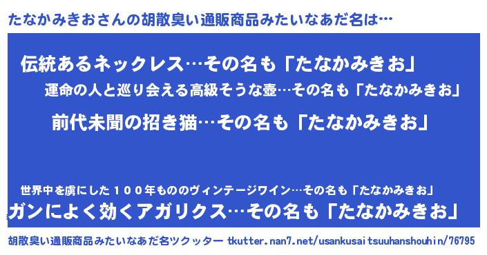| 意味不明あだ名 | 『永久保存たなかみきお』 |