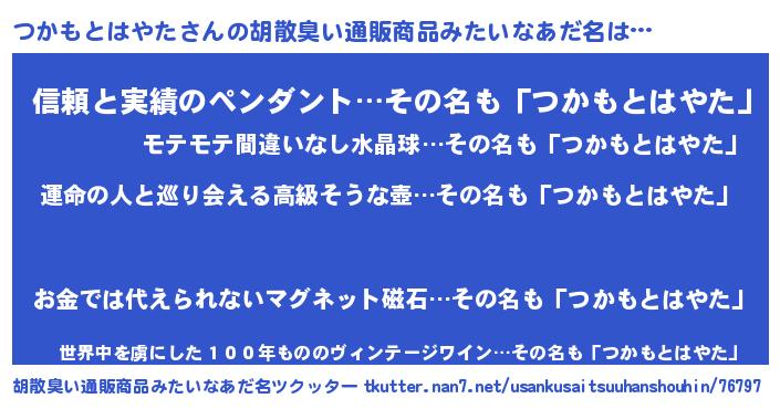 | 肩書あだ名 | 『つかもとはやた大統領』 |