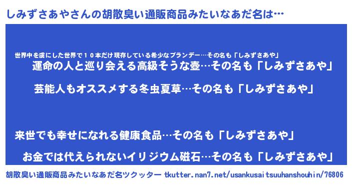 | 意味不明あだ名 | 『自称しみずさあや』 |