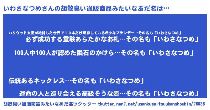 | ヘコむあだ名 | 『つくし』『いわもー』『いわを』 |