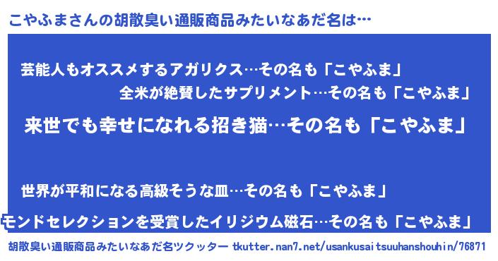 | 意味不明あだ名 | 『永久保存こやふま』『自称こやふま』 |