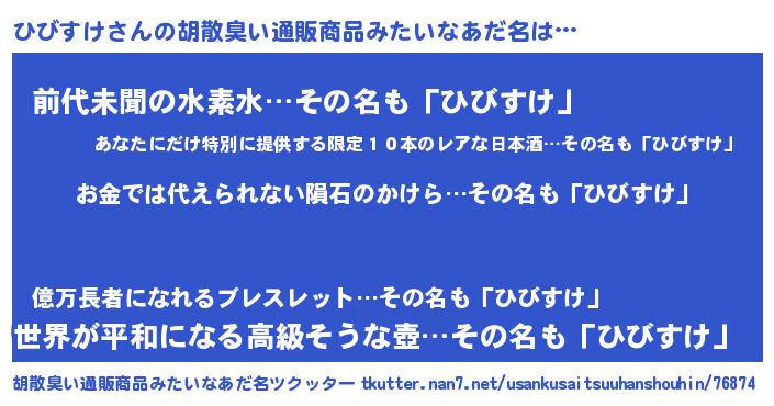 | ヘコむあだ名 | 『ひびすけ(震え声)』『酢こんぶ』 |