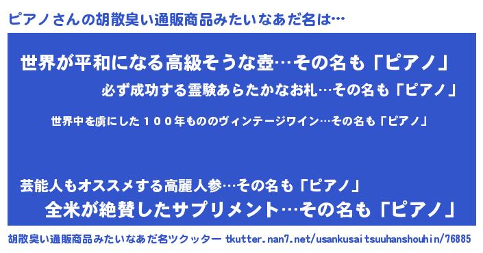 | 意味不明あだ名 | 『住所不定無職ピアノ(12歳)』『自称ピアノ』 |