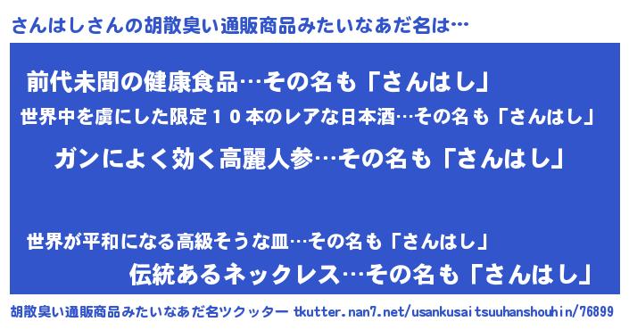| ヘコむあだ名 | 『さんはし(小並感)』『さん太郎』 |