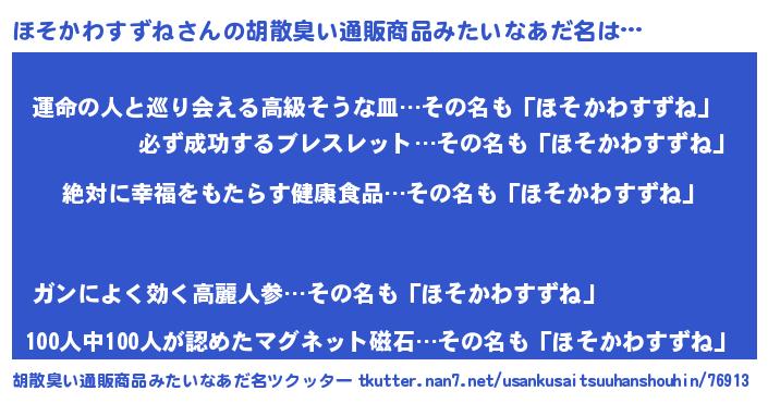 | ヒーロー風カッコイイあだ名 | 『ネオホソカワスズネ』 |