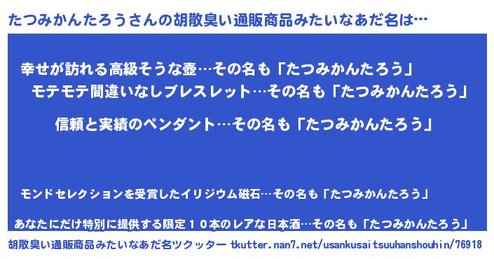 | 意味不明あだ名 | 『とにかく怪しいたつみかんたろう』 |