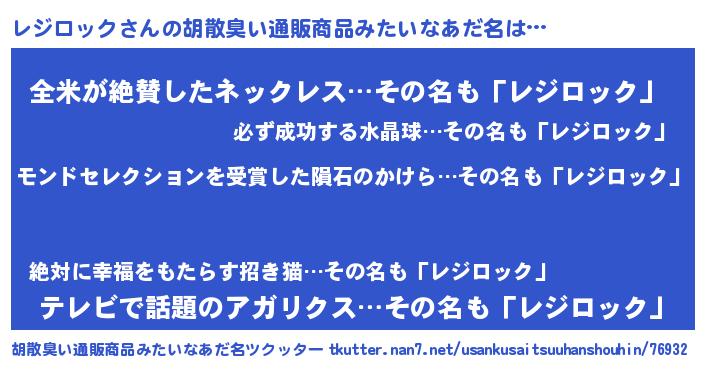 | ヒーロー風カッコイイあだ名 | 『天空の使者レジロック』『幻影騎士レジ』 |