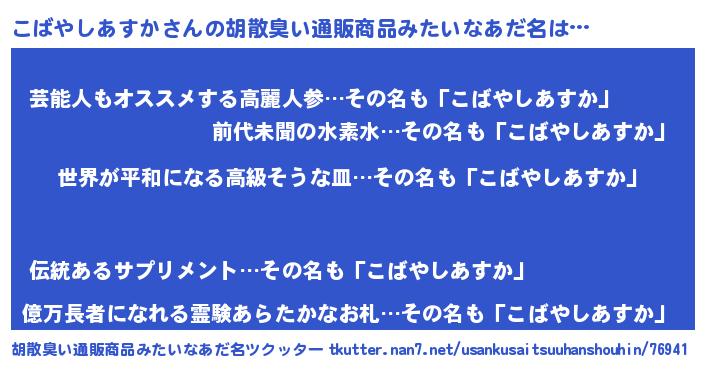 | 意味不明あだ名 | 『こばやしあすかフォーエバー』 |