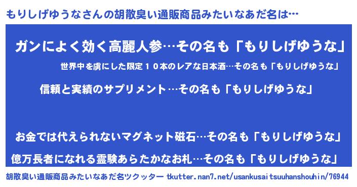 | 意味不明あだ名 | 『とにかく怪しいもりしげゆうな』 |