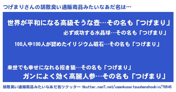 | ポケモン風あだ名 | 『ツックウザ』『ツゲマダネ』 |