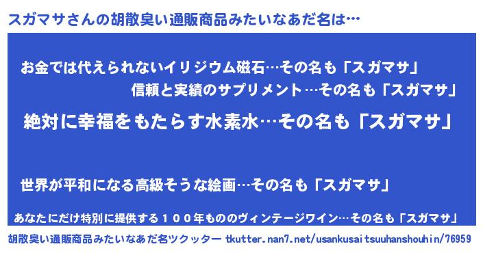 | ヘコむあだ名 | 『スガマサ(震え声)』『スガ太郎』 |