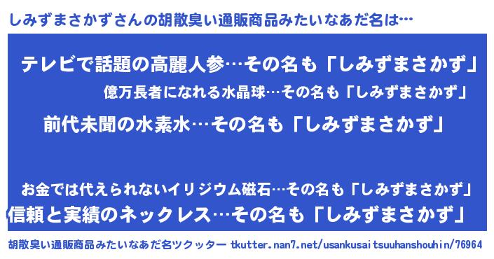 | ヘコむあだ名 | 『しみずまさかず(遠い目)』『しみを』 |