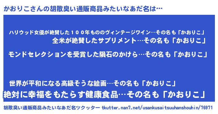 | ヘコむあだ名 | 『かおりこ(震え声)』『かおお』 |