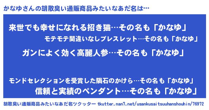 | ヘコむあだ名 | 『かなゆ(笑)』『かなお』『かなもー』 |