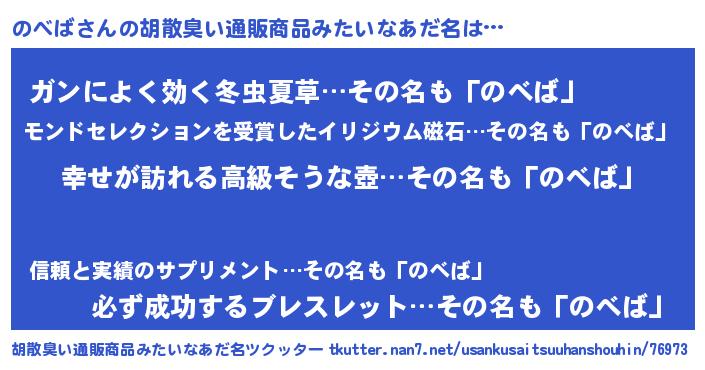 | 男性向けラノベタイトル風あだ名 | 『緋弾のノベバ』『のべばの憂鬱』 |