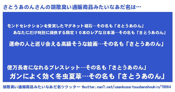 | 意味不明あだ名 | 『さとうあのんフォーエバー』 |