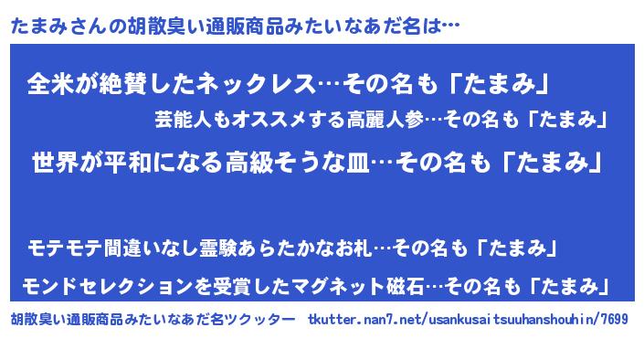 | 意味不明あだ名 | 『たまみフォーエバー』『自称たまみ』 |