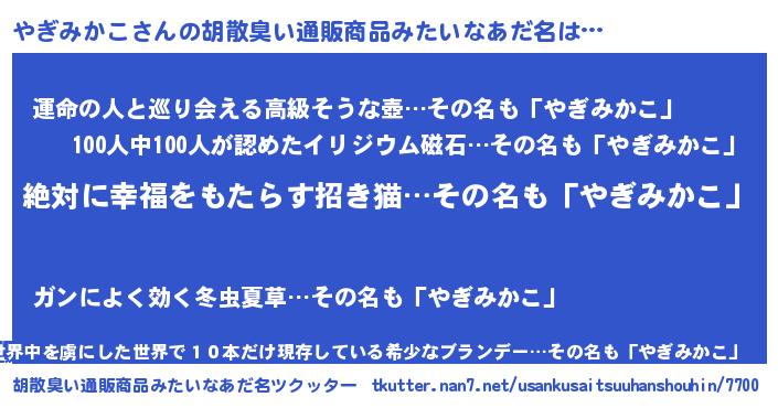 | 意味不明あだ名 | 『永久保存やぎみかこ』『自称やぎみかこ』 |