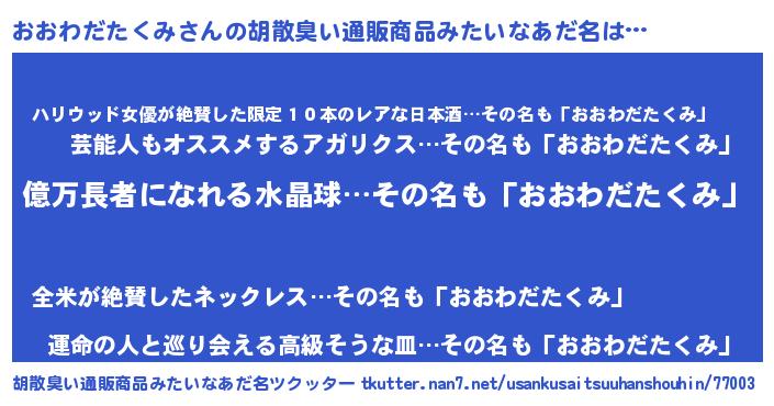 | 意味不明あだ名 | 『ペロリンおおわだたくみ』 |