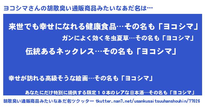 | ヒーロー風カッコイイあだ名 | 『銀牙騎士ヨコ』『ネオヨコシマ』 |