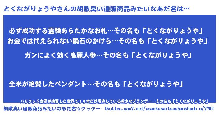 | 意味不明あだ名 | 『自称とくながりょうや』 |